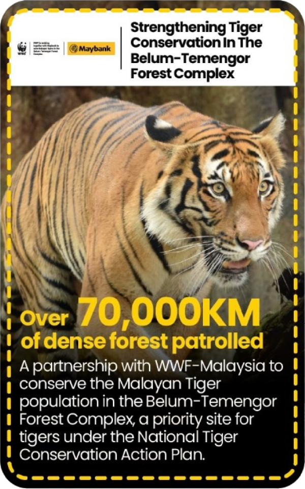 The population of the Malayan tiger, pictured in our logo, is dwindling. From 3,000 in the 1950s, the number of tigers in Malaysia is estimated to have declined to between 250 and 340. We are working with WWF-Malaysia, and relevant governmental and regulatory agencies to do our part in supporting the conservation of tigers. The conservation efforts include protection and monitoring of tigers as well as engagement with communities.